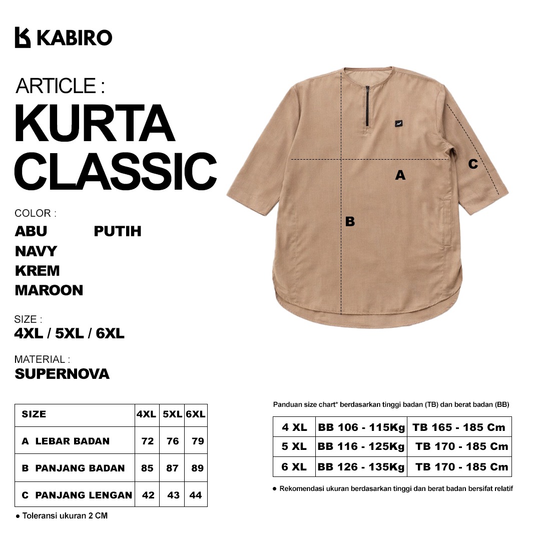 Tidak mudah menemukan baju shalat yang nyaman dan sesuai dengan tubuh besar? Kurta Classic KABIRO adalah solusinya! Dirancang khusus untuk pria muslim yang memiliki postur tubuh besar, kurta ini tersedia dalam ukuran hingga 6XL (XXXXXXL) untuk memastikan kenyamanan Anda dalam beribadah.